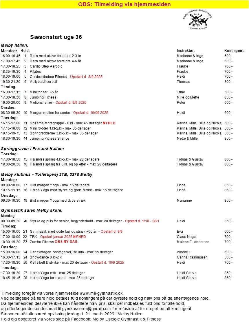 Sæsonen starter uge 36 (1. september)